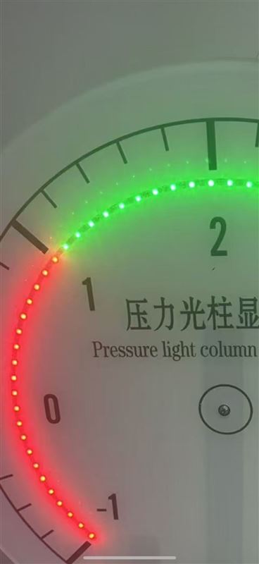 3. 双显示输出:◦ 光柱显示:数字信号驱动LED光柱阵列,根据压力值点亮对应数量的灯珠,形成连续的绿色光带,直观反映压力变化。